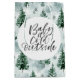 Este saco de presentes apresenta uma cena de inverno nevado de aquarela em evergreens com o popular ditado "Baby it is Cold Outside" em uma letra de na moda. O saco de presentes perfeito este inverno para a mãe ser!