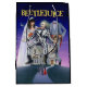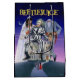 A clássica arte de poster teatral de Beetlesuco, que o apresenta sentado no topo de uma casa com Barbara e Adam Maitland enquanto a família Deetz se aproxima da casa.