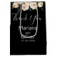 O beige floral em sacos negros de presentes de casamento para presentes para a festa de noiva inclui obrigado que você escreve.