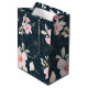 Bonito e chico, blush cor-de-rosa, padrão floral escuro, bolsa de presente azul-escuro. Este design delicado é perfeito para casamentos, negócios ou ocasiões especiais.