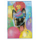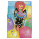 Feliz aniversário com este design bonitinho com um lindo e festeiro cachorrinho malinois belga que veste chapéu, cercado por balões coloridos, confetti e balizers.