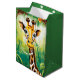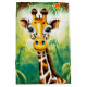 Girafa bonita de desenho animado com plantas, árvores e flores vibrantes da selva para o aniversário.