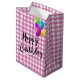 Sacola Para Presentes Média Birthday Pink e White Gingham