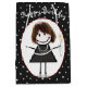 Bonita figura de palito com cabelo, tênis, vestidos de bolinhas e buquê margarida em padrão de bolinhas preto e branco. O texto é editável.