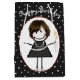 Bonita figura de palito com cabelo, tênis, vestidos de bolinhas e buquê margarida em padrão de bolinhas preto e branco. O texto é editável.