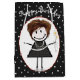 Bonita figura de palito com cabelo, tênis, vestidos de bolinhas e buquê margarida em padrão de bolinhas preto e branco. O texto é editável.
