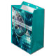 Saco de presentes com uma coleção de na moda de bolhas de Natal azuis e prateadas. Um design personalizável para você personalizar com seu próprio texto, imagens e ideias. Imagem criada usando uma fotografia original e técnicas digitais.