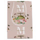 Sacola Para Presentes Média Boca-Cola Rosa Floral e Borboletas Monograma