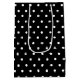 Este saco preto com presentes brancos de bolinhas é um clássico! É simples e pode ser usado para qualquer tipo de evento. Pegue alguns, então você sempre tem alguns na mão.