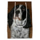 Dê um presente a um amante de cachorro com este saco-presente de tamanho médio (saco de cachorro) que apresenta a foto de um adorável, preto e branco Springer Spaniel em Inglês junto com um molde branco. Além disso, você pode personalizar seu saco-presente para editar fotos para substituí-las por uma de suas. Selecione o estilo do seu saco-presente.
