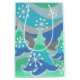 Uma paisagem de inverno moderna e estilizada com pinheiros foscos e flocos de neve espumantes. Saco de presentes com cinza verde, azul, prata e branco personalizável para você personalizar com seu próprio texto, imagens e ideias. Imagem criada usando um desenho a lápis colorido melhorado digitalmente.