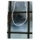 Uma paisagem fria de outono vista através de uma janela de foscos no início de uma manhã. Pinheiros e pinheiros com gelo clareando suas agulhas, mapeamentos em tons de vermelho, laranja e amarelo, grama polida vista através da ascensão de nevoeiro de um riacho escondido. Flanqueando a janela de ambos os lados estão folhas de rosa vermelho e verde.