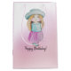 Sacola Para Presentes Média Bonitinha Rosa Pinta Feliz Aniversário Aquarela