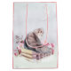 Bonito gatinho persa fica sentado em livros com flores e borboletas todas em tons pastéis e mudados de adoradores de gatos rosa e mauve, qualquer saco de presente multiocasião, através de excelente para qualquer pessoa na educação ou um leitor ávido