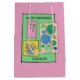 Sacola Para Presentes Média Bonito rabisco, 3 plantas, rosa, nome de aniversár