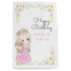 Saco de presente de aniversário de criança adorável, com uma princesa bonito e bonita, com vestido e coroa cor-de-rosa, e quadro floral colorido.