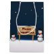 Ilustração winterly com dois bonitos bonitinhos de neve segurando um cartaz de madeira com saudação de Natal em um ambiente de neve.
