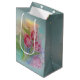 Aproveite este saco de presentes caprichoso com uma garotinha em fundo baseado em tulipas com uma borboleta. Será perfeito para guardar seu pequeno presente de aniversário. Todo texto é personalizável. Verifique a coleção de 5 de Aniversário da Gota e Gatinho.