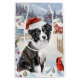 Este design festivo captura o espírito alegre da época de férias, apresentando um adorável filhote vestindo um chapéu de Papai Noel. O cachorro está aninhado numa terra maravilhosa de inverno, completo com um boneco de neve, uma árvore de Natal decorada, e presentes lindamente envoltos. Os flocos de neve caem suavemente, acrescentando um toque mágico à cena, enquanto as cores vibrantes das decorações de férias criam uma atmosfera quente e alegre.
