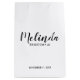 O moderno Script Black and White Personalised Bridesmaids Gift Bag apresenta o nome personalizado da madrinha em estilo de letra de caligrafia moderno com título e data de casamento no estilo de letra sans serif moderno em fundo branco. Também perfeito para Madrinha de casamento, Flor Girl, Mãe da Noiva, Padrinhos de casamento, Melhor Homem e muito mais.