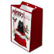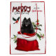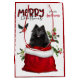A imagem em frente e verso deste saco de presentes de Natal é uma imagem de um adorável pequeno Pomeraniano preto a espreitar de um saco de presentes de Natal. Atrás dele está um sorvedouro de bagas sagradas e vermelhas. Um pássaro toucinho vermelho e preto está prestes a pousar. O texto da xadrez de búfalos vermelho e preto estilizado diz MERRY CHRISTMAS". Sua própria assinatura está em dois campos para você personalizar. Certifique-se de ver os produtos correspondentes, incluindo ornamentos, em nossa loja.