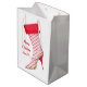 Esta bolsa de presente de Natal agradará definitivamente a um amante calçado! Diga Feliz Natal e personalize com um nome. O salto de salto alto de salto de salto é uma nova e moderna tomada de uma estocagem de Natal. Brilhante e colorido, a bota de risca de pimenta vermelha e branca tem um salto vermelho alto e um punho vermelho. Uma sola adiciona um toque de verde limão. As palavras "Feliz Natal" e um nome são perfeitamente personalizáveis para as suas próprias palavras e nome. Esta arte original é de Phyllis Dobbs e é totalmente personalizável.
