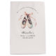 Uma ilustração encantadora de aquarela com um par de calçados de bailarina pendurados num arco cor-de-rosa, pintada em aquarela com sotaques dourados (estes são efeitos digitais, não em folha real) enfeite este elegante e adorável saco-presente personalizado de chá de menina. Perfeito para um balé de convite para chá para uma menina, para uma mãe que ama a pequena ideia de bailarina ou ama a própria balé.
