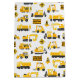 Caminhões de construção, sinais de aviso e padrões de cones de construção em fundo branco. Perfeito para um caminhão de construção amando o aniversário de garotinha ou menino ou para o chá de fraldas de construção.