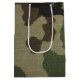 Saco de presente brilhante médio com uma imagem de burlap camuflage castanho e verde. Ver o grande saco de presentes, confetti, caixa de favor, etiqueta de favor, etiqueta e papel de embalagem. Veja toda a coleção de Gift Bag Patriótico dos anos 40 nos TOUCHES ESPECIAIS| Seção Favoritos para festas.