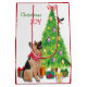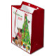 Sacola Para Presentes Média Cão german shepherd, pássaro e árvore de Natal