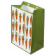 Carrot Veggie Healthy Comida Party Medium Gift Bag design de Nisha Prabhu. Celebre em estilo com nossa deliciosa "Carrot Veggie Healthy Comida Party Medium Gift Bag". Perfeito para qualquer ocasião, este saco de presentes caprichosos apresenta ilustrações vibrantes de cenoura que acrescentam um toque fresco e divertido à sua dádiva. Quer estejamos a celebrar um aniversário, um lar armado, ou um evento temático saudável, esta bolsa deve trazer sorrisos e alegria a quem a receber. Com gráficos encantadores de cenoura, este saco de presentes é perfeito para amantes de comidas e amigos conscientes da saúde.