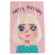 Sacola Para Presentes Média Cartoon Birthday Girl On Blush Pink