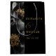 Estas bolsas de presente de casamento florais pretas e douradas podem ser personalizadas com sua informação em tipografia moderna. Desenhado por Thisisnotme©