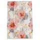 Sacola Para Presentes Média Casamento Floral Cinza Coral Rosado