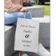 Saco de presente de casamento preto e branco com nomes dos noivos. Mais produtos com este design estão na coleção abaixo.