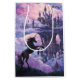 Impressões da arte do castelo do unicórnio, posters, acessórios, e características dos presentes uma pintura original da fantasia por Traci Van Wagoner de um unicórnio preto que eleva em um monte gramíneo que negligencia uma elevação branca do castelo no céu cercado por nuvens cor-de-rosa e roxas coloridas. Este castelo bonito e lunático na arte da fantasia das nuvens é perfeito para amantes da fantasia, amantes do castelo, amantes do unicórnio, amantes mágicos, e todos que ama o fantástico.