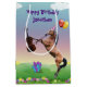 Papel de embrulho divertido e bonito, com um cavalo tocando violino. Completar com balões e um presente.