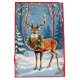 Um saco de presentes de Natal muito doce com um veado festivo parado num festivo inverno maravilhoso e encantado bosque decorado na diversão de Natal!