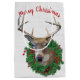 Grande veado de pinho de férias e bagas vermelhas em madeira branca. O texto pode ser editado ou excluído.