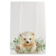 Chá de fraldas De Inverno Bonito Que Podemos Aguardar Saco Médio De Presente. Este precioso bebê urso polar Cub está descansando em um leito de eucalipto e pinho verde com um brilho suave de luzes de aspersão. Coordenando a decoração do chá de fraldas e a papelaria no Boho, podemos esperar a coleção do Chá de fraldas de inverno.