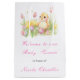 Saco de presente de chá de fraldas bonito com um pintinho adorável e tulipas cor-de-rosa e amarelas. Perfeito para primavera ou chá de fraldas de verão. As palavras podem ser alteradas para se adequarem aos seus próprios detalhes ou requisitos