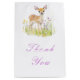 Bonito bolsa de favores de chá de fraldas com um adorável veado e flores roxas e amarelas. Perfeito para primavera ou chá de fraldas de verão. As palavras podem ser alteradas para se adequarem aos seus próprios detalhes ou requisitos