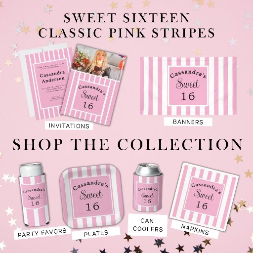 Sweet Sixteen Classic Pink and White Stripes Criado por Miriam K