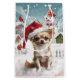 Este design festivo captura o espírito alegre da época de férias, apresentando um adorável filhote vestindo um chapéu de Papai Noel. O cachorro está aninhado numa terra maravilhosa de inverno, completo com um boneco de neve, uma árvore de Natal decorada, e presentes lindamente envoltos. Os flocos de neve caem suavemente, acrescentando um toque mágico à cena, enquanto as cores vibrantes das decorações de férias criam uma atmosfera quente e alegre.