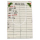 Retro library card with smudged ink stains, Christmas holly leaves, berries, and stamped due dates for Christmas 2026