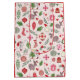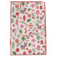 A playful scatter of stockings, ornaments, candy canes, greenery, and cozy holiday icons fills this cheerful Christmas print. Gingerbread house outlines for the background. Colorful, joyful, and perfect for packaging gifts.