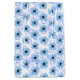 Padrão de margarida azul com bolhas transparentes sobre fundo branco.