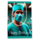 Esta bolsa de presente de aniversário divertida apresenta um cirurgião pronto para operar.