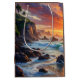 Personalize com o nome/monograma do destinatário ou uma mensagem escrita na areia - Se você não quiser que ele seja personalizado, você pode deletar e simplesmente desfrutar da ilustração. Enrole seu presente no paraíso com esta vibrante bolsa de presentes costeiros, mostrando um pôr do sol que respira sobre ondas oceânicas e penhascos rochosos. A cena tropical ousada transforma qualquer presente em uma experiência memorável. Perfeito para aniversários, casamentos de praia, desabrigos, aposentadorias ou qualquer ocasião para amantes do oceano, caçadores de sol e fãs de decoração costeira.