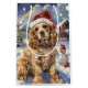 Este design festivo captura o espírito alegre da época de férias, apresentando um adorável filhote vestindo um chapéu de Papai Noel. O cachorro está aninhado numa terra maravilhosa de inverno, completo com um boneco de neve, uma árvore de Natal decorada, e presentes lindamente envoltos. Os flocos de neve caem suavemente, acrescentando um toque mágico à cena, enquanto as cores vibrantes das decorações de férias criam uma atmosfera quente e alegre.